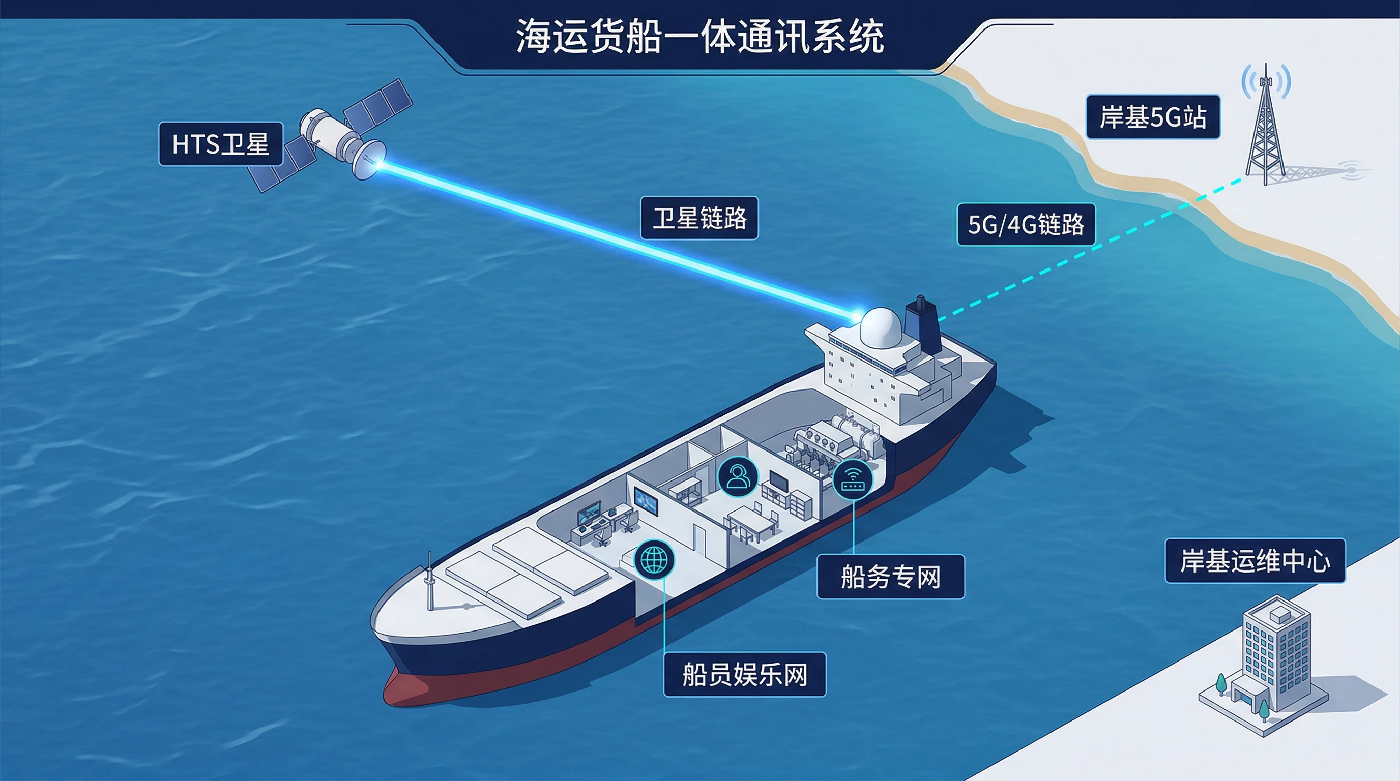 数字化赋能: 从简单的语音通信进化为支持海量IoT采集与大数据回传的“智慧船舶”中枢。